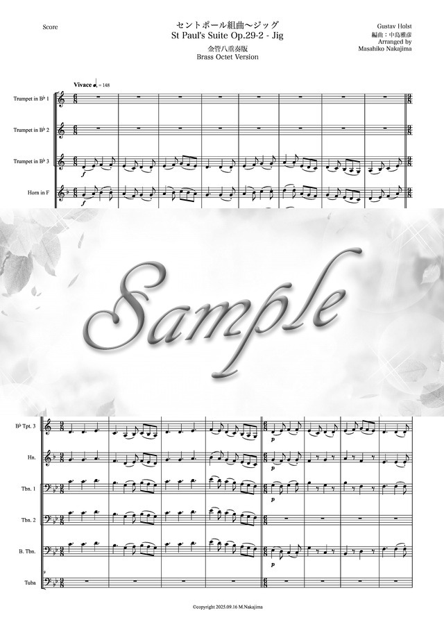 ホルスト「セントポール組曲~ジッグ」金管八重奏版 コンビニプリント対応