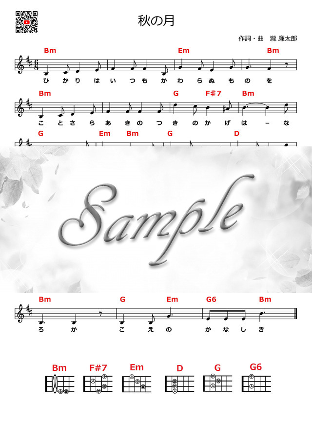秋の月(ウクレレ弾き歌い用楽譜) コンビニプリント対応