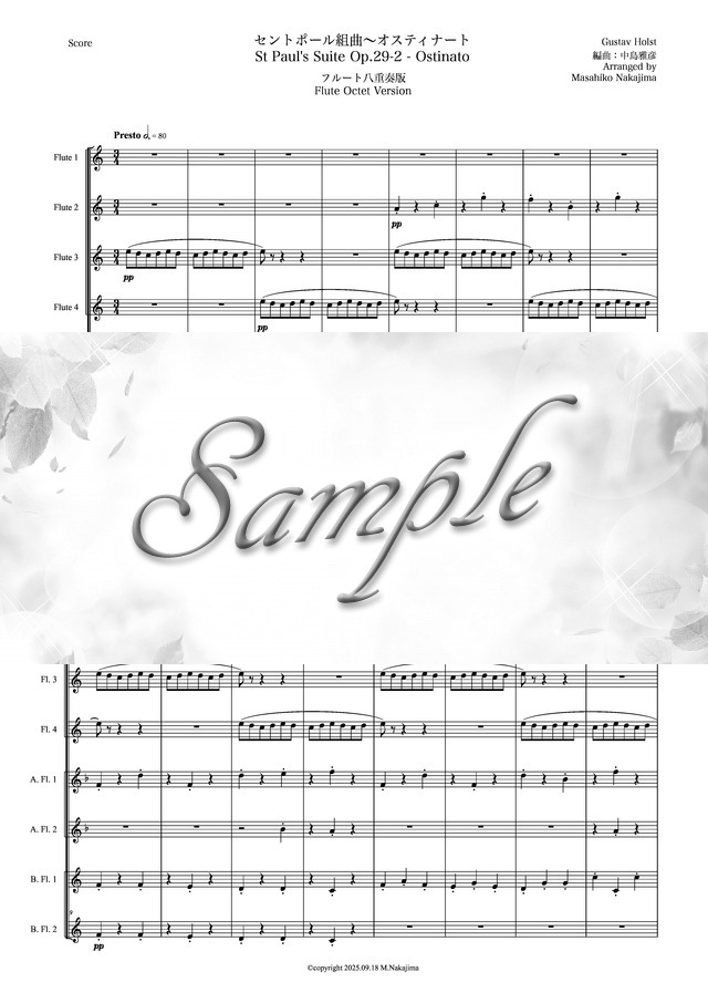 ホルスト「セントポール組曲~オスティナート」フルート八重奏版 コンビニプリント対応