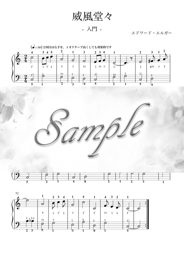 【威風堂々】ピアノソロ:入門 コンビニプリント対応