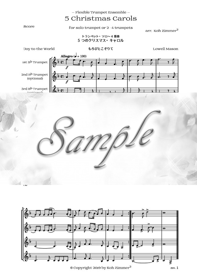 5つのクリスマス・キャロル (トランペットアンサンブル) コンビニプリント対応