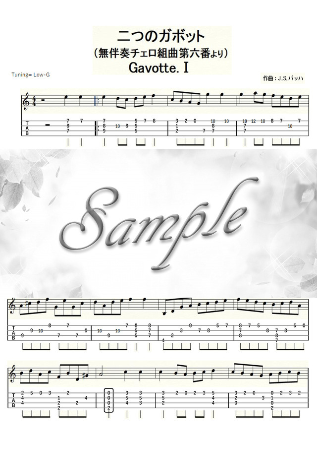バッハの二つのガボット(ウクレレソロ / Low-G / 中級)-無伴奏チェロ組曲第六番より- コンビニプリント対応