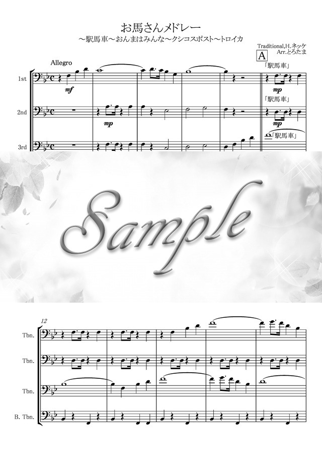 お馬さんメドレー トロンボーン4重奏 コンビニプリント対応