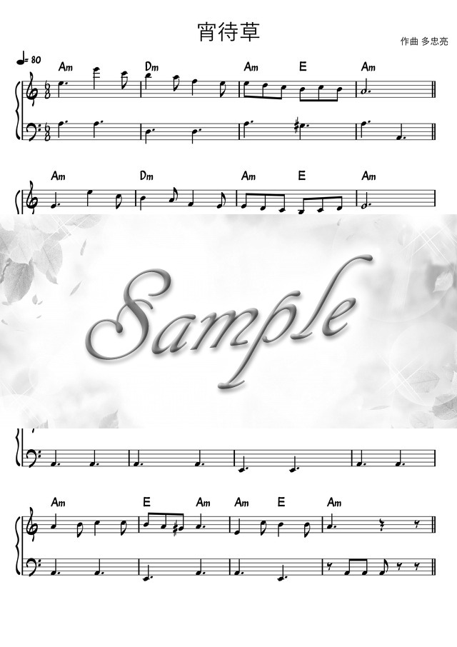 宵待草 ピアノ(ソロ)譜 初級~中級 コンビニプリント対応