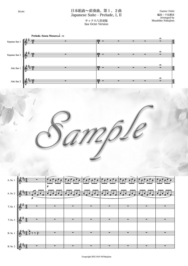 ホルスト「日本組曲~前奏曲、第1,2曲」サックス八重奏版 コンビニプリント対応
