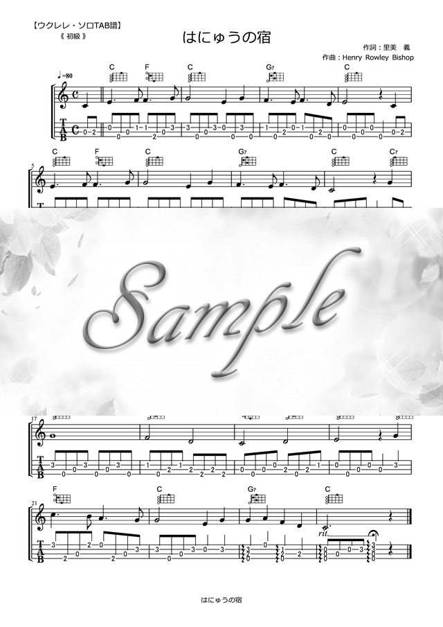 はにゅうの宿【ウクレレ・ソロTAB譜】 コンビニプリント対応
