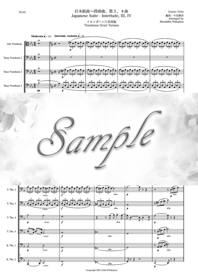ホルスト「日本組曲~間奏曲、第3,4曲」トロンボーン八重奏版 コンビニプリント対応
