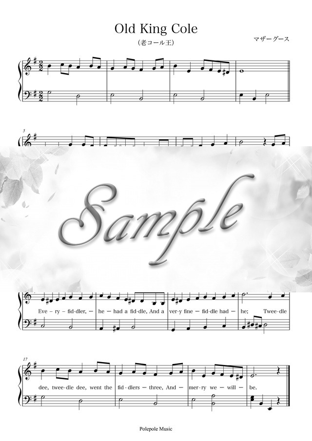 「Old King Cole(老コール王)」弾き歌い楽譜(英語歌詞) コンビニプリント対応