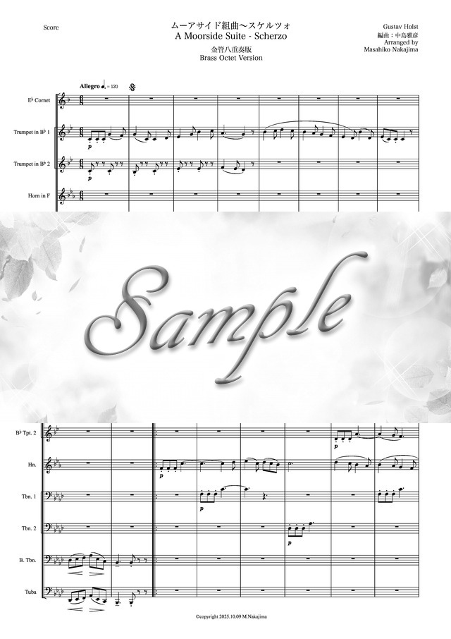 ホルスト「ムーアサイド組曲~スケルツォ」金管八重奏版 コンビニプリント対応