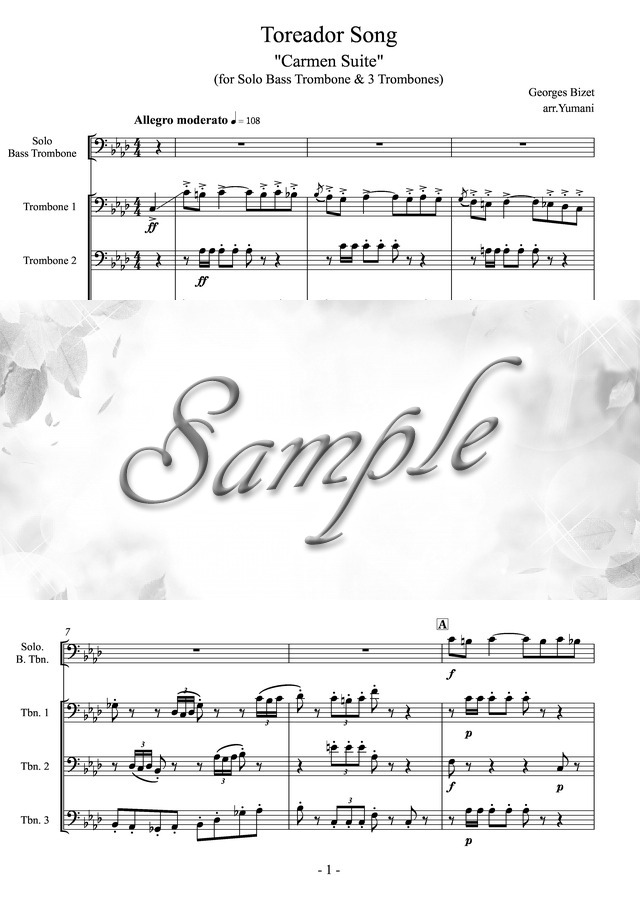 「カルメン」より「闘牛士の歌」(ソロ・バストロンボーンと3本のトロンボーンのための) コンビニプリント対応