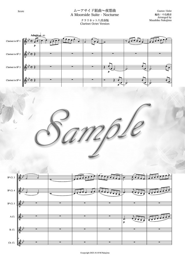 ホルスト「ムーアサイド組曲~夜想曲」クラリネット八重奏版 コンビニプリント対応