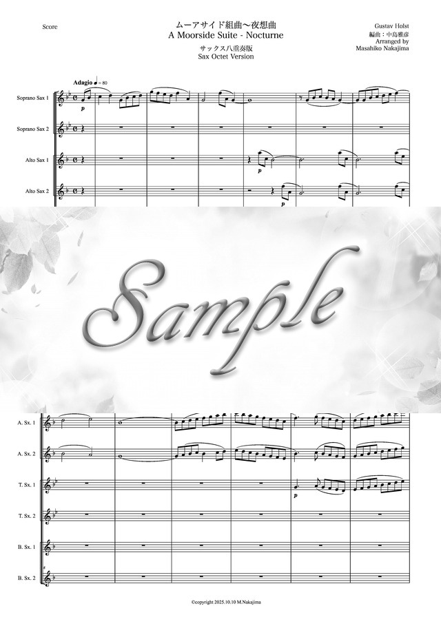 ホルスト「ムーアサイド組曲~夜想曲」サックス八重奏版 コンビニプリント対応