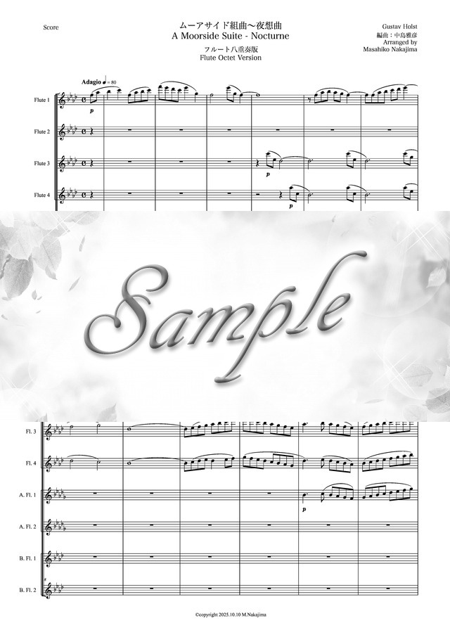 ホルスト「ムーアサイド組曲~夜想曲」フルート八重奏版 コンビニプリント対応