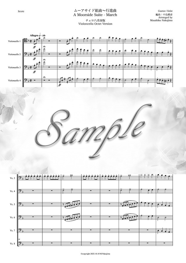 ホルスト「ムーアサイド組曲~行進曲」チェロ八重奏版 コンビニプリント対応