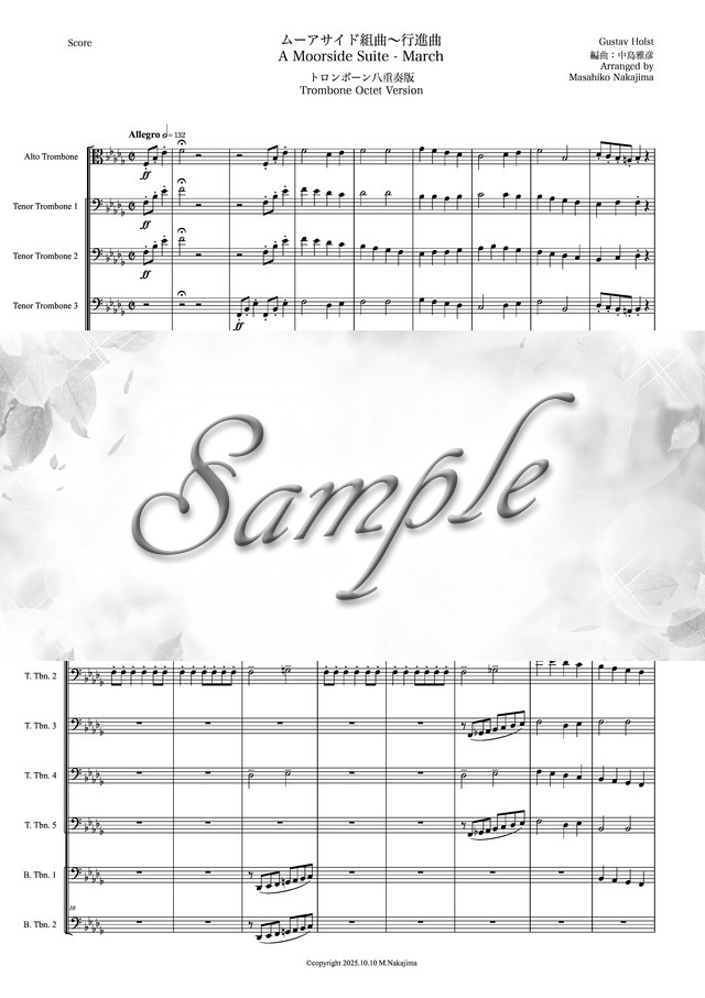 ホルスト「ムーアサイド組曲~行進曲」トロンボーン八重奏版 コンビニプリント対応