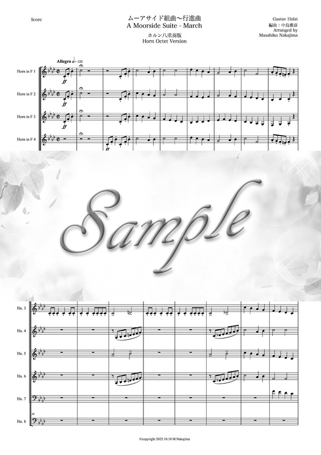 ホルスト「ムーアサイド組曲~行進曲」ホルン八重奏版 コンビニプリント対応