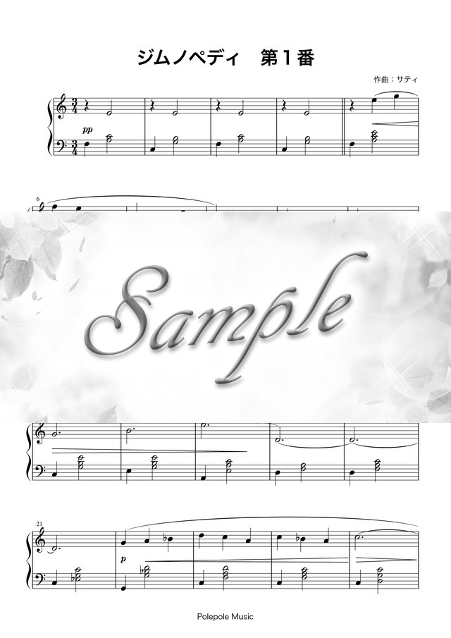 サティ「ジムノペディ」第1番 ピアノ楽譜 コンビニプリント対応