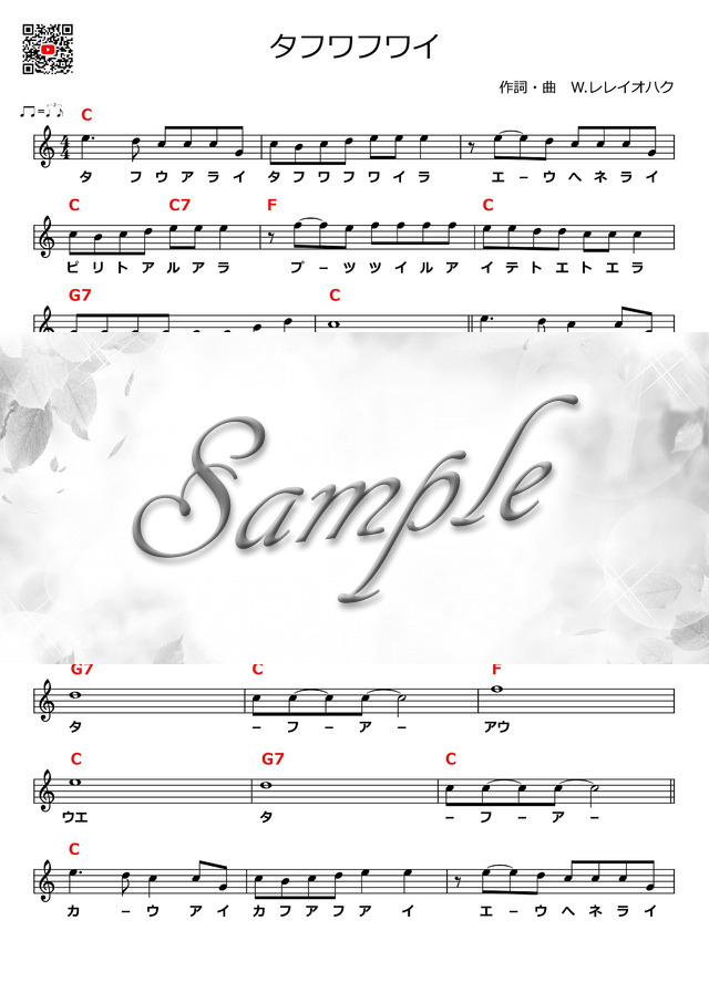 タフワフワイ(ウクレレ弾き歌い用楽譜) コンビニプリント対応