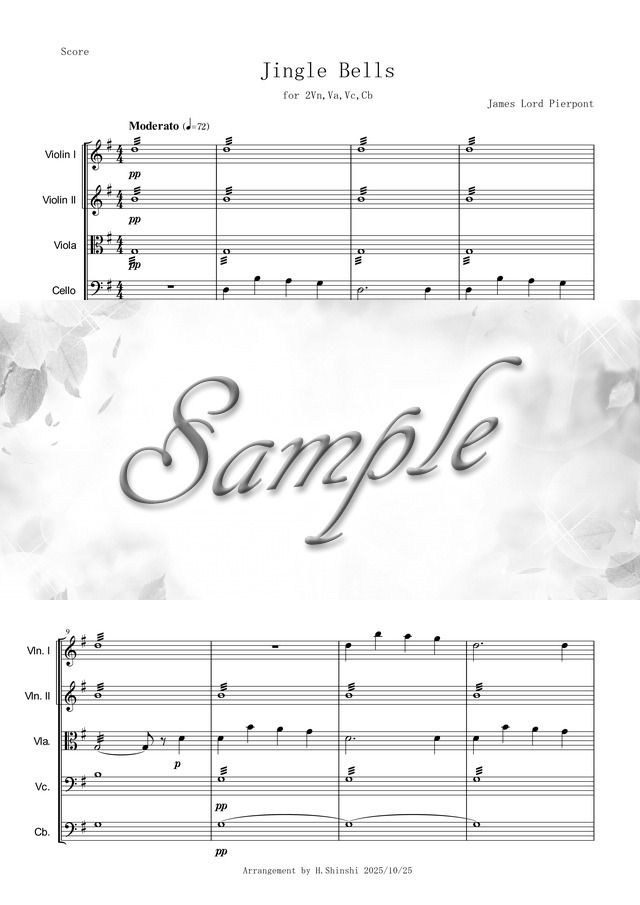 ジングルベル 弦楽五重奏 コンビニプリント対応