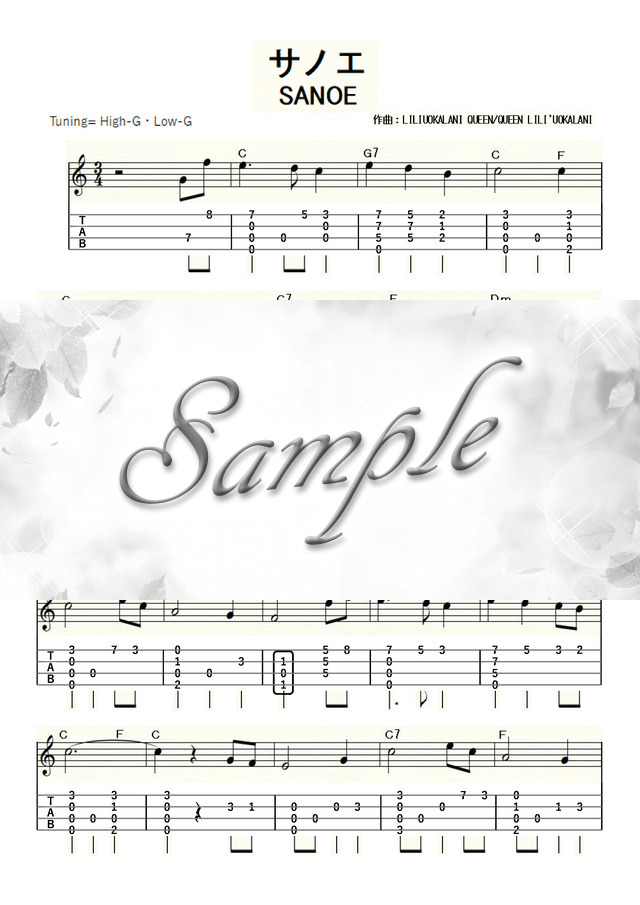 サノエ~SANOE~(ウクレレソロ / High-G・Low-G / 初級~中級)-ハワイアン- コンビニプリント対応