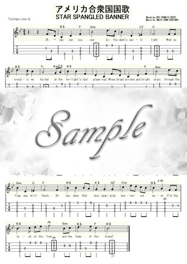 アメリカ合衆国国歌~STAR SPANGLED BANNER~(ウクレレソロ / Low-G / 中級) コンビニプリント対応