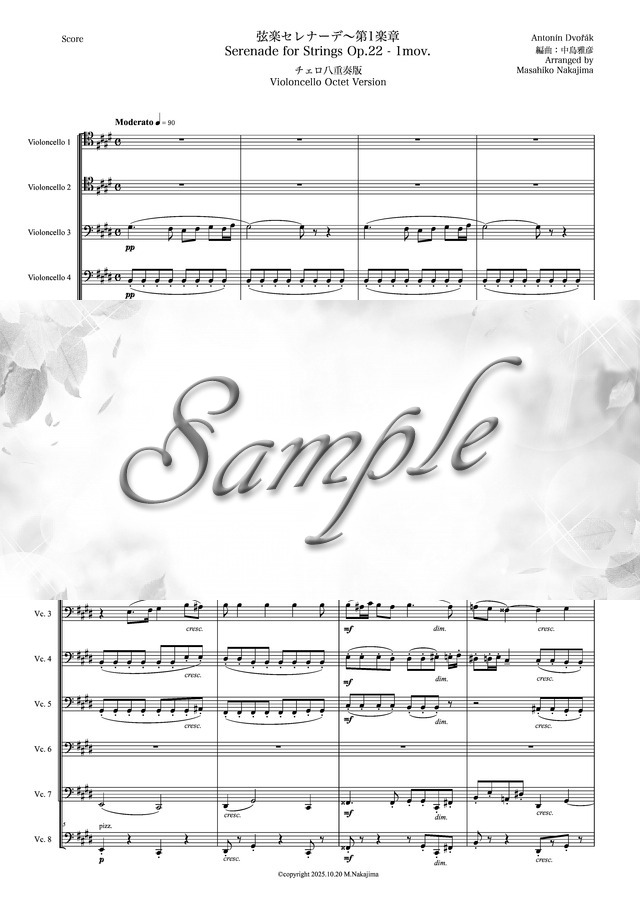 ドヴォルザーク「弦楽セレナーデ~第1楽章」チェロ八重奏版 コンビニプリント対応