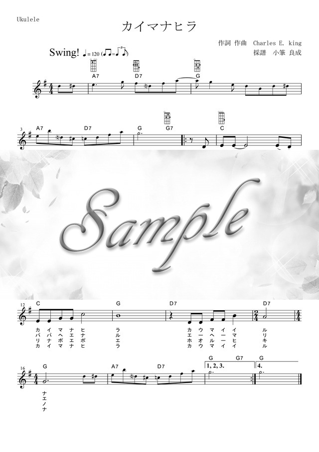カイマナヒラ ウクレレ弾き語り コンビニプリント対応