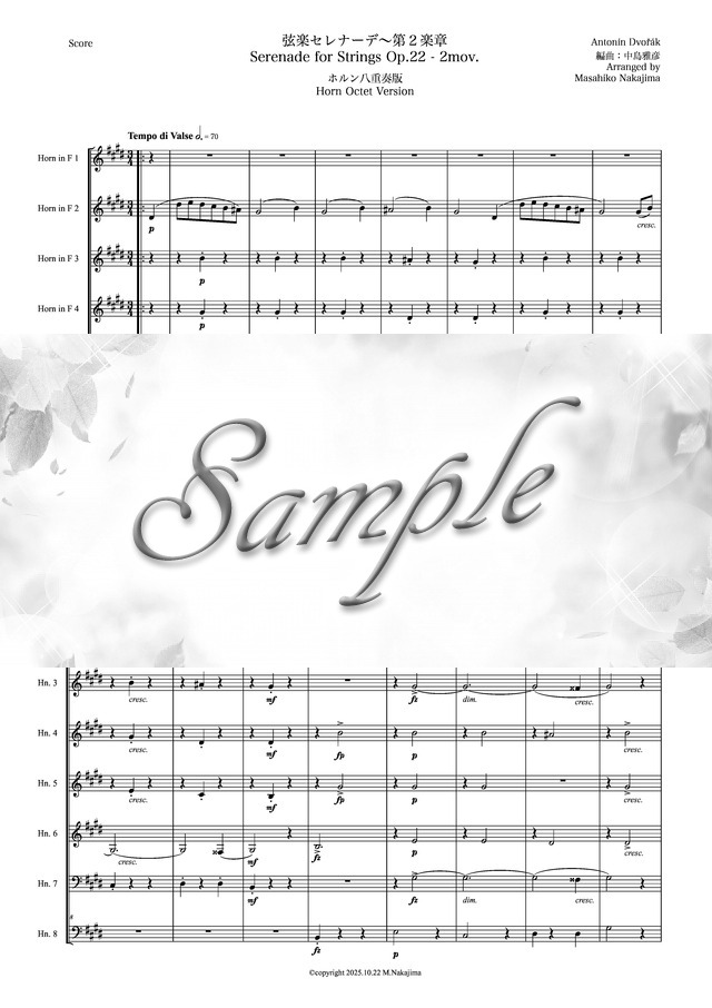 ドヴォルザーク「弦楽セレナーデ~第2楽章」ホルン八重奏版 コンビニプリント対応