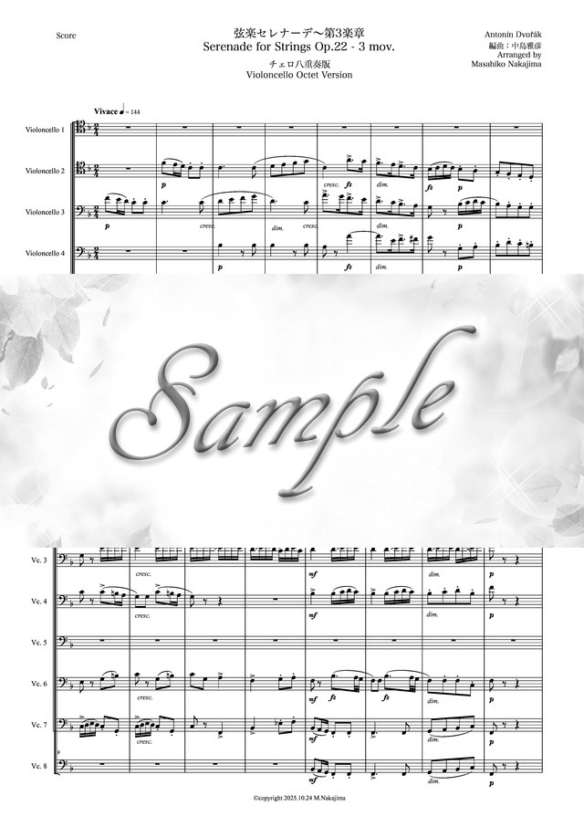 ドヴォルザーク「弦楽セレナーデ~第3楽章」チェロ八重奏版 コンビニプリント対応