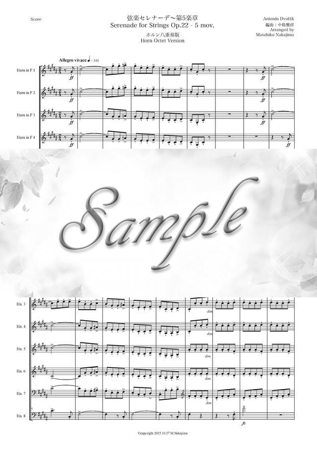 ドヴォルザーク「弦楽セレナーデ~第5楽章」ホルン八重奏版 コンビニプリント対応