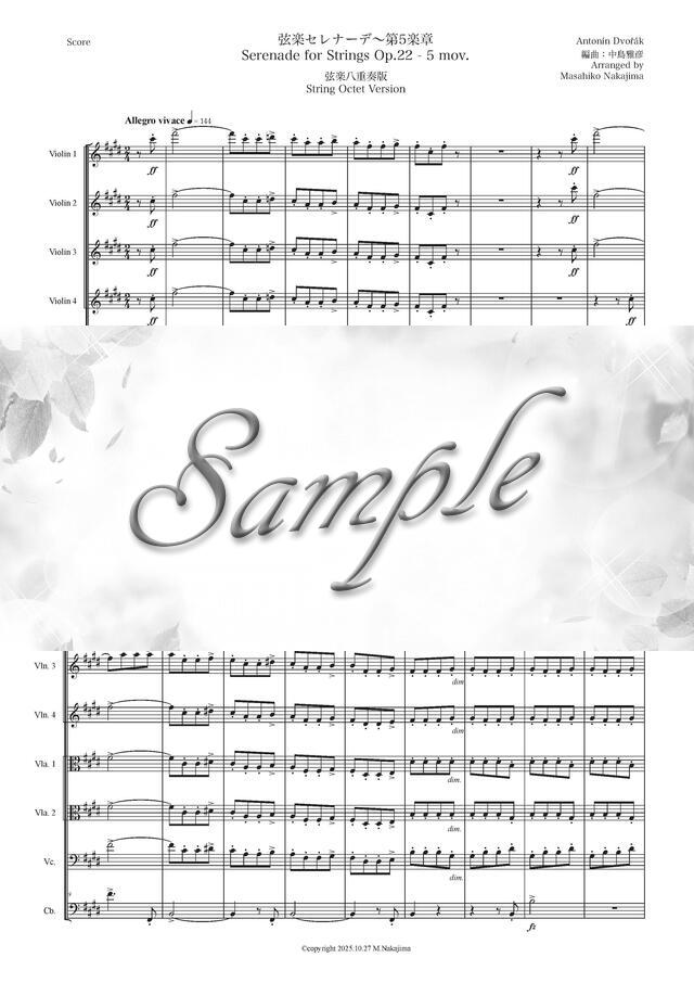 ドヴォルザーク「弦楽セレナーデ~第5楽章」弦楽八重奏版 コンビニプリント対応