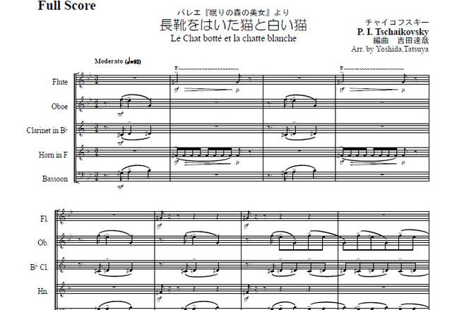 長靴をはいた猫と白い猫 木管アンサンブル楽譜
