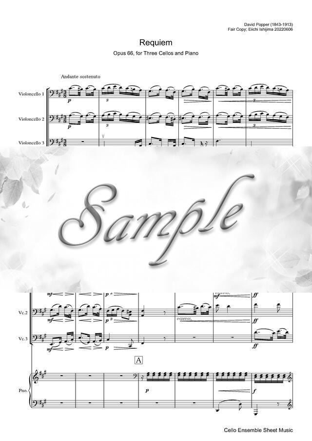 ポッパー作曲「レクイエム」(3Vc+Pf版&6Vc版)スコア コンビニプリント対応