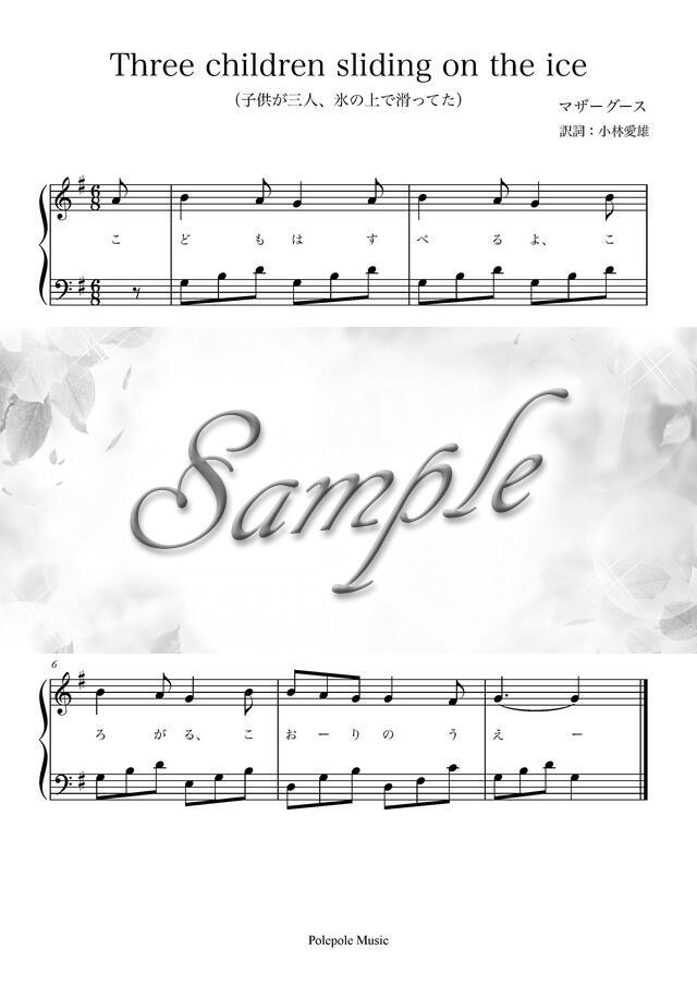 マザーグース「子供が三人、氷の上で滑ってた(Three children sliding on the ice)」日本語訳詞弾き歌い楽譜 コンビニプリント対応