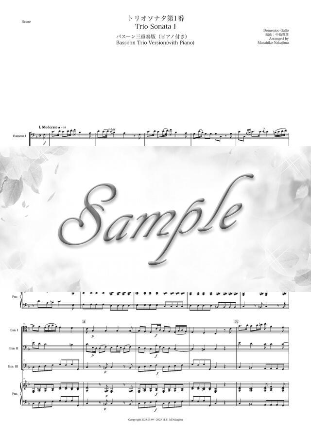 ガロ「トリオソナタ第1番」バスーン三重奏版(ピアノ付き) コンビニプリント対応
