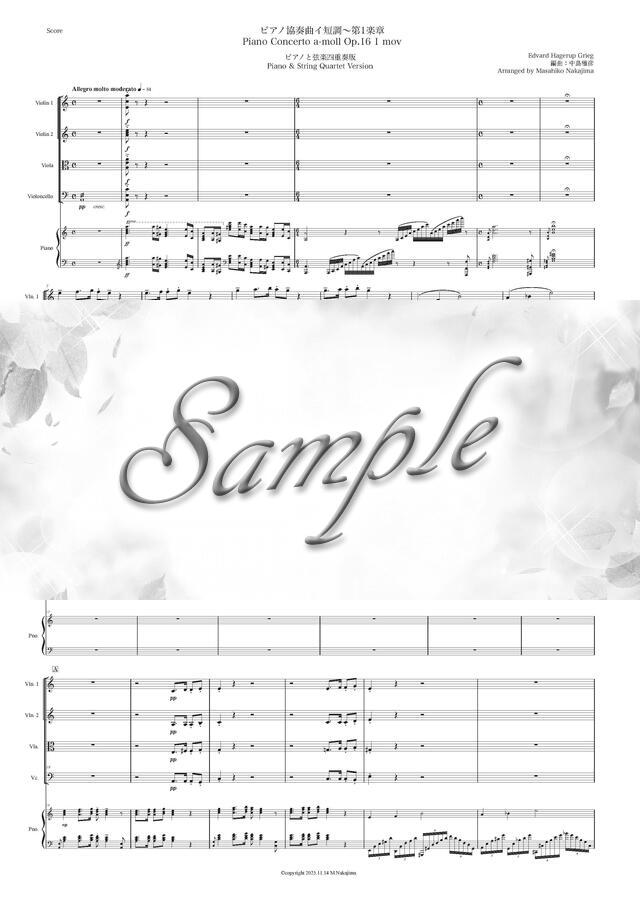 グリーグ「ピアノ協奏曲~第1楽章」弦楽四重奏伴奏版 コンビニプリント対応