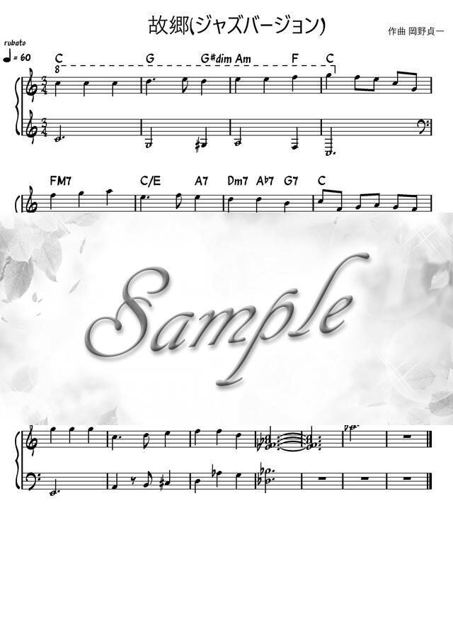 故郷(ジャズバージョン) ピアノ(ソロ)譜 入門 コンビニプリント対応