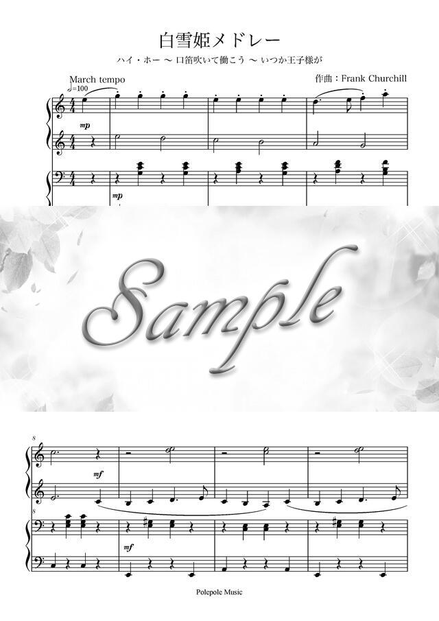 連弾「白雪姫メドレー」(ハイ・ホー ~ 口笛吹いて働こう ~ いつか王子様が) コンビニプリント対応
