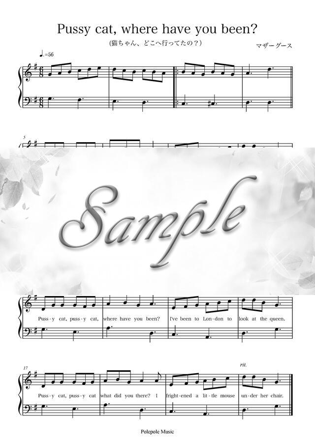 マザーグース「Pussy cat, where have you been?」弾き歌い楽譜 コンビニプリント対応