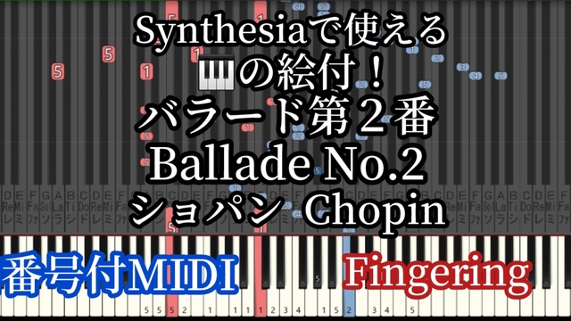 Chopin Ballade No.2 ショパン バラード第2番 Keyboard background images and finger-numbered MIDI data for use in Synthesia シンセシアで使える鍵盤の背景画像と指番号付MIDIデータ
