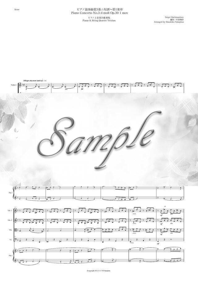 ラフマニノフ「ピアノ協奏曲第3番~第1楽章」弦楽四重奏伴奏版 コンビニプリント対応