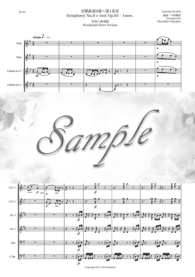 ドヴォルザーク「新世界交響曲~第1楽章」木管八重奏版 コンビニプリント対応