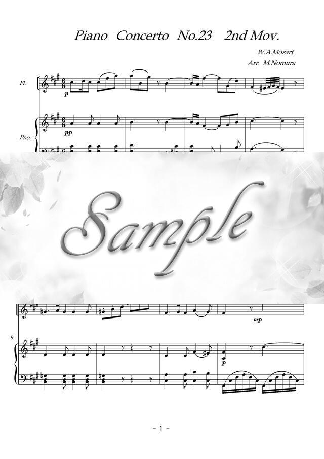 モーツアルトのピアノ協奏曲第23番イ長調から第2楽章(フルートソロ) コンビニプリント対応