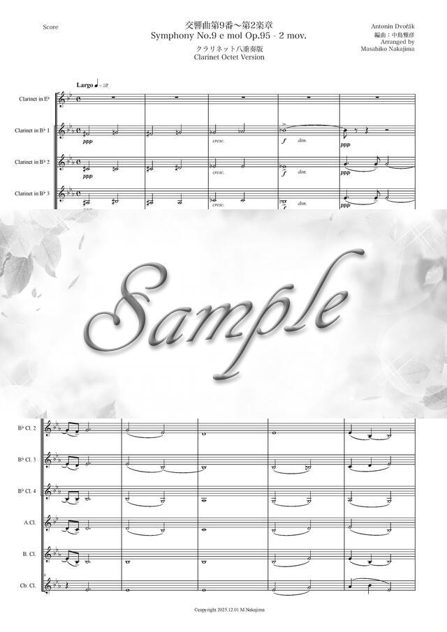 ドヴォルザーク「新世界交響曲~ラルゴ」クラリネット八重奏版 コンビニプリント対応