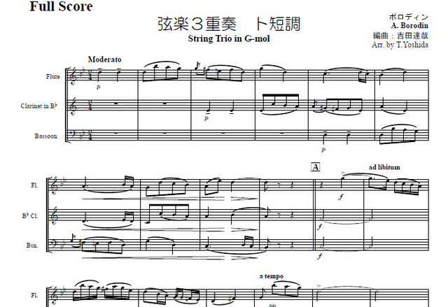 ボロディンの弦楽3重奏ト短調 木管アンサンブル楽譜