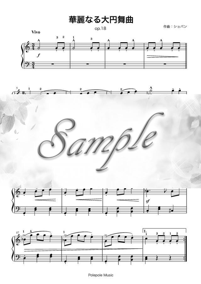 「華麗なる大円舞曲」ピアノ楽譜(ハ長調) コンビニプリント対応