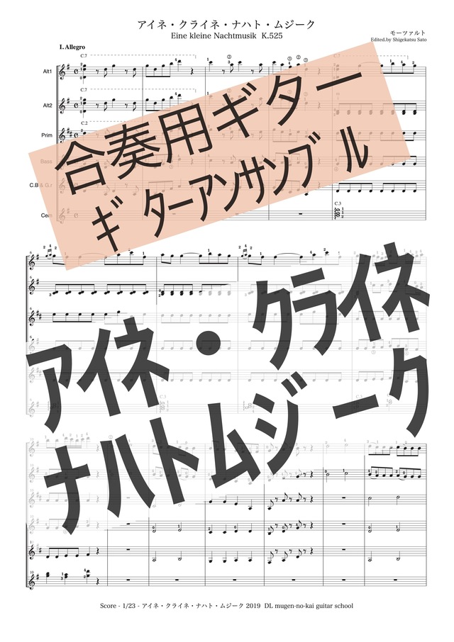 アイネ・クライネ・ナハトムジーク 第1楽章 合奏用ギター使用の ギターアンサンブル チェンバロ入り コンビニプリント対応