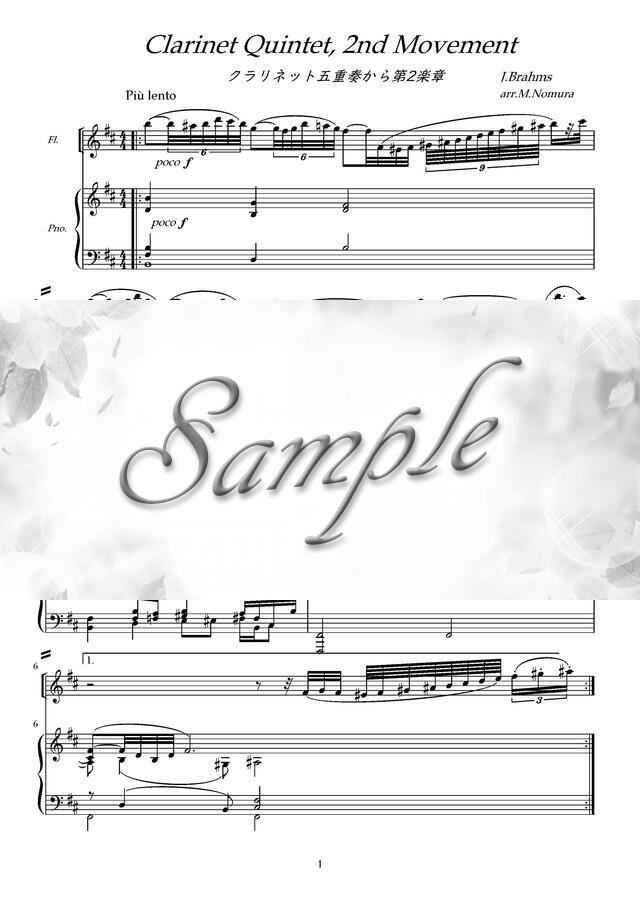 ブラームス作曲 クラリネット五重奏曲ロ短調から第2楽章中間部分 (フルートソロアレンジ) コンビニプリント対応
