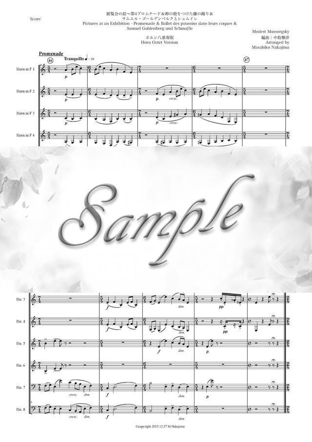 ムソルグスキー「展覧会の絵~第4プロムナード&卵の殻をつけた雛の踊り&サムエル・ゴールデンベルクとシュムイレ」ホルン八重奏版 コンビニプリント対応