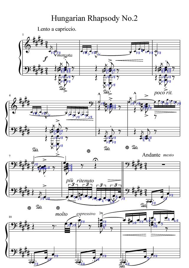 Hungarian Rhapsody No.2 piano sheet music ハンガリー狂詩曲第2番 ドレミ付楽譜 コンビニプリント対応